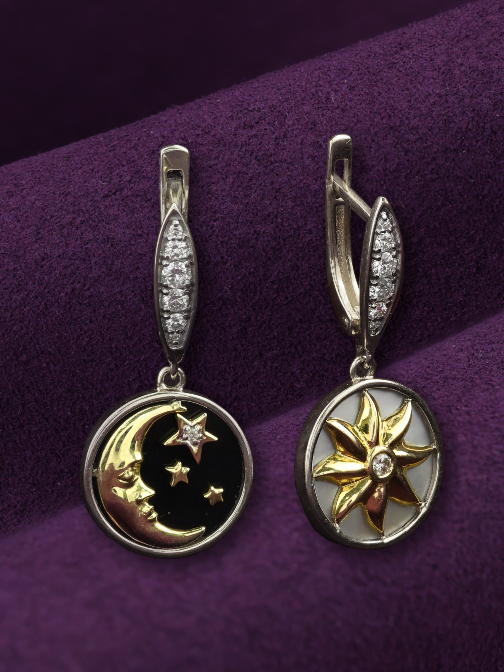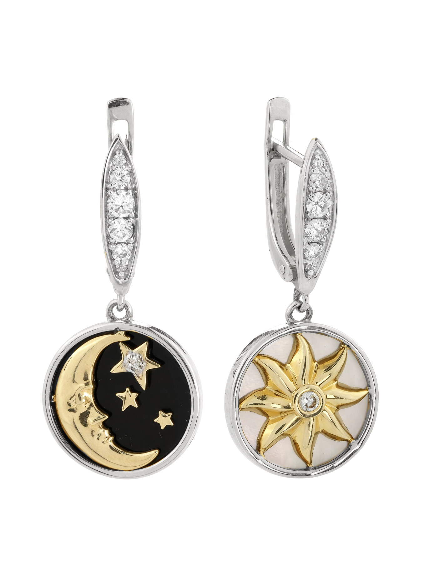 Серьги из белого золота c бриллиантами, ониксом и перламутром