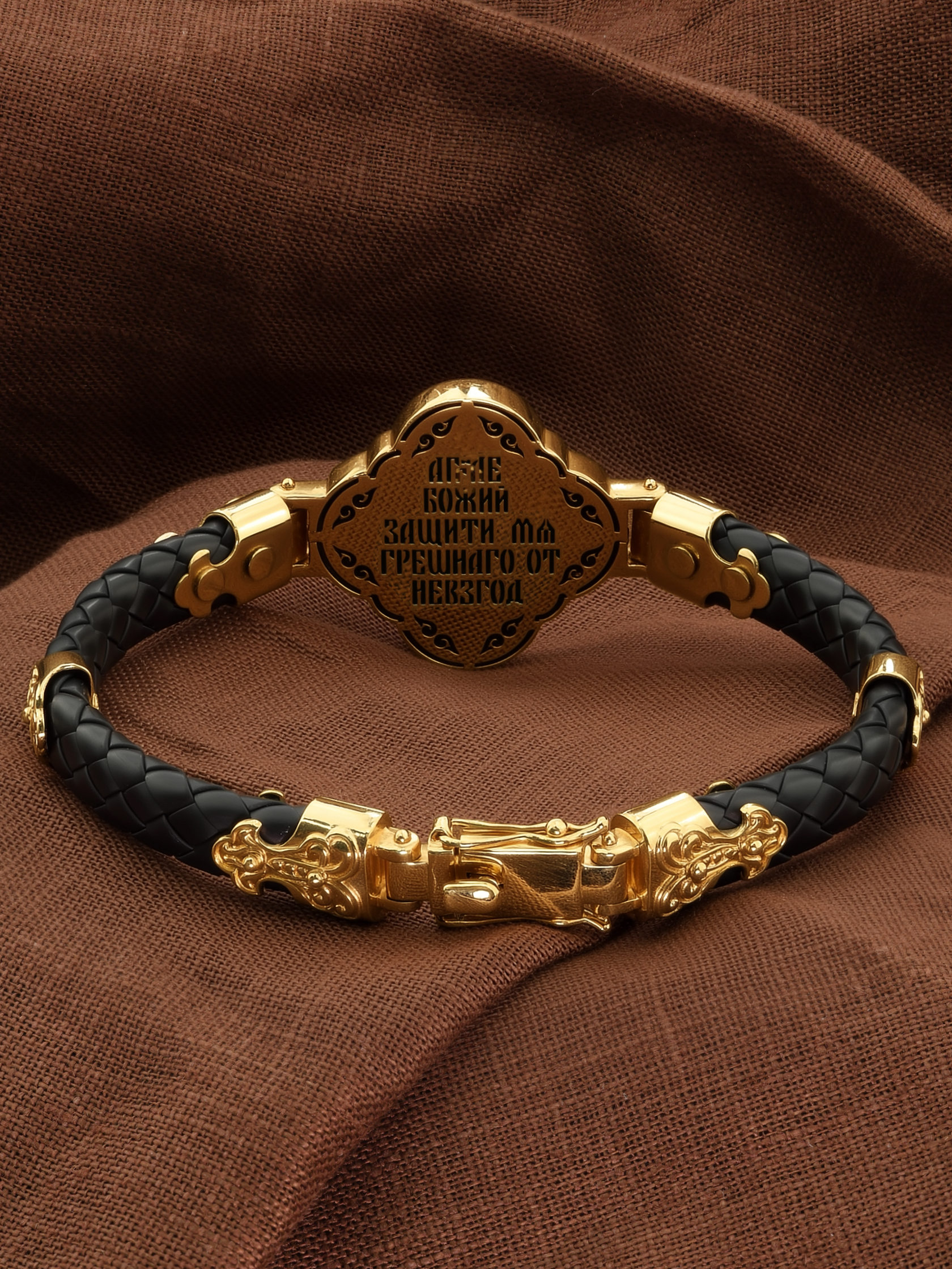 На лицевой стороне основного звена изображён Святой Ангел-Хранитель. Ангел Хранитель — это Ангел приставляемый Богом к человеку при крещении для охраны и помощи в добрых делах. Он невидимо находится при человеке на протяжении всей его жизни, если человек сохраняет в себе любовь к Богу и истинную веру перед Ним. Ангел-Xранитель делают для нас все, что служит к истинному нашему благу и спасению. Невидимо пребывая при нас постоянно, он, руководствуя нас ко спасению, не только по нашему желанию таинственно наставляет нас на все доброе и полезное, не только возносит наши молитвы к Богу, но еще и сам от себя охраняют и защищают нас от врагов видимых и невидимых и ходатайствует за нас пред Богом. Ангел-Хранитель так любит нас, как никто на земле любить не может. Ангел-Хранитель — присный друг наш, незримый тихий собеседник, пресладостный утешитель. Одного лишь каждому из нас он желает — спасения души; к этому он направляет все свои заботы. И если видит нас также заботящимися о спасении, радуется, если же видит нас пребывающими в нерадении о душе своей, скорбит.