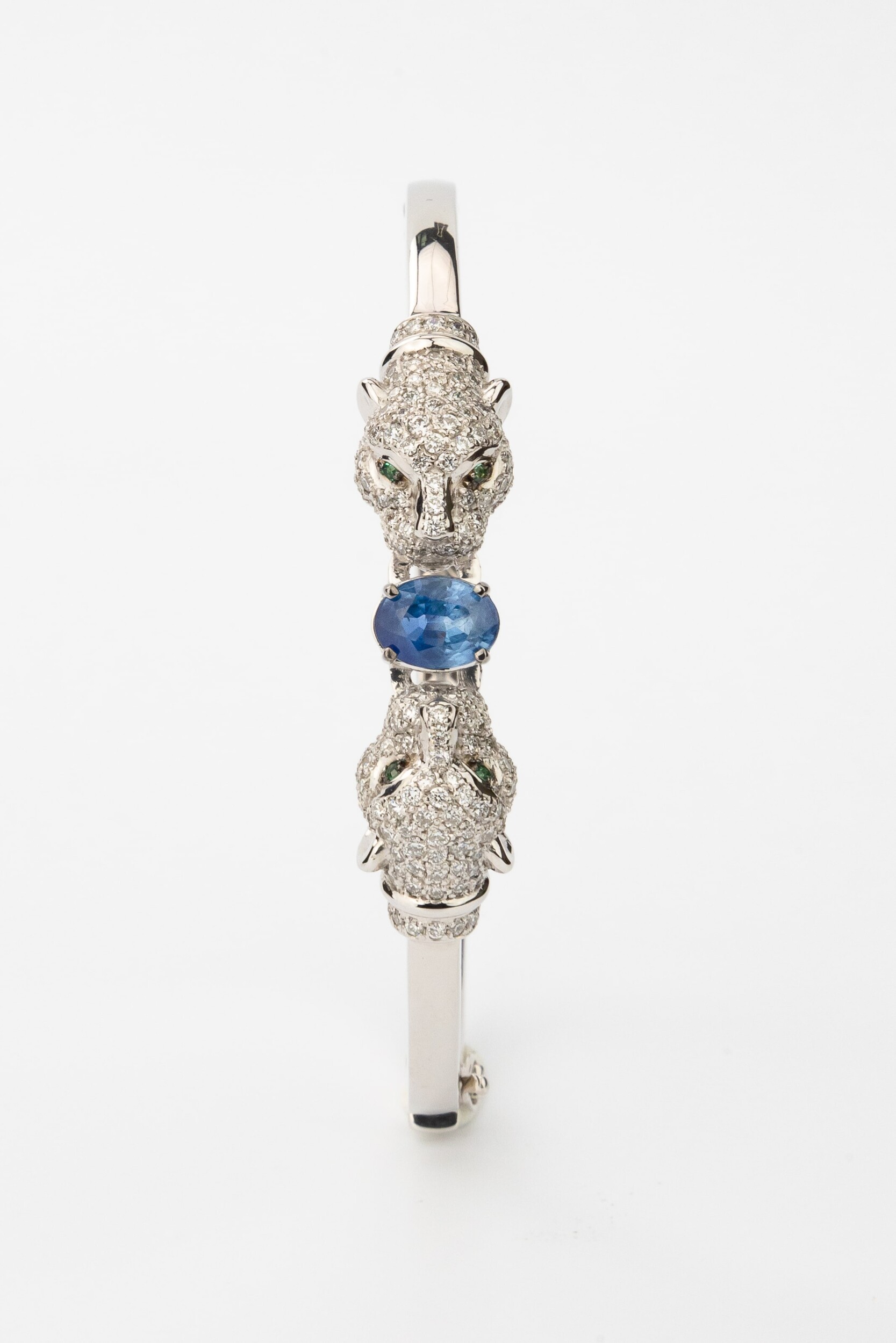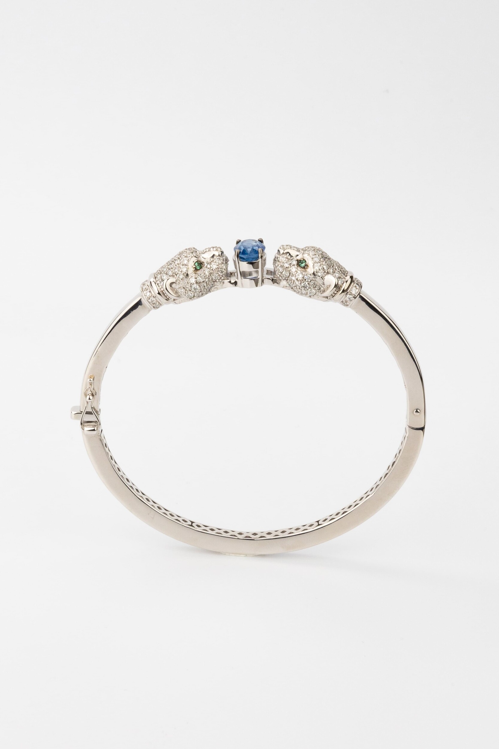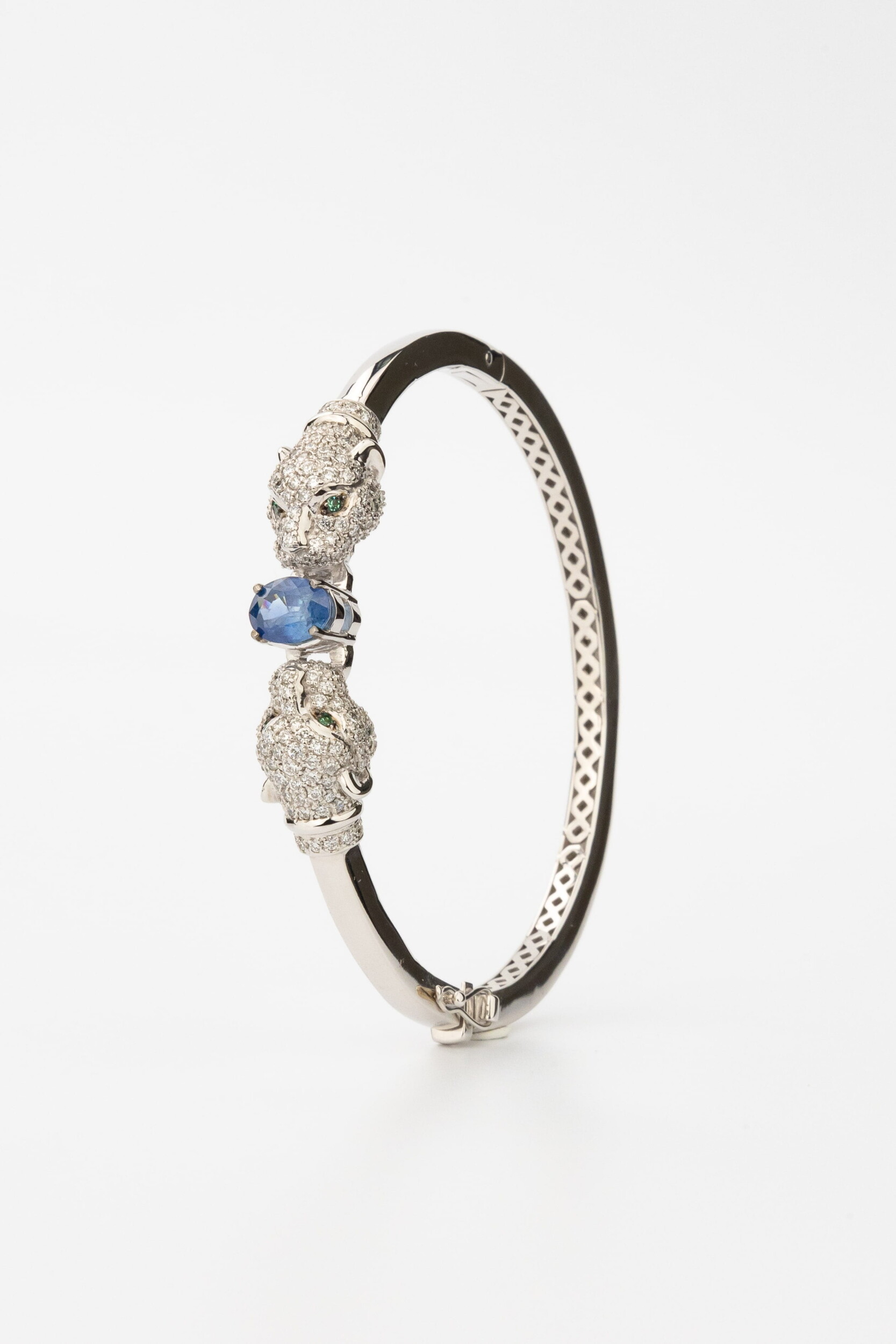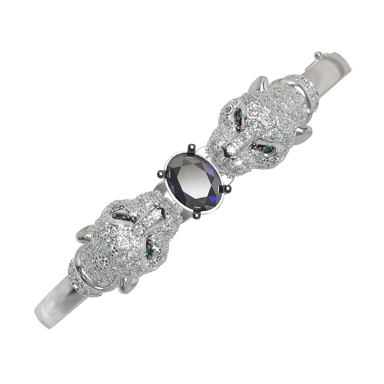 Браслет из белого золота c бриллиантами, сапфиром и изумрудом