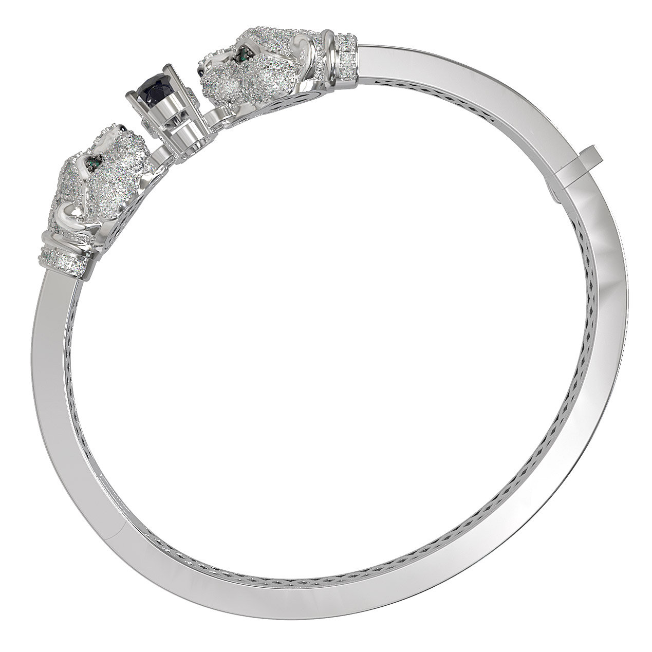Браслет из белого золота c бриллиантами, сапфиром и изумрудом