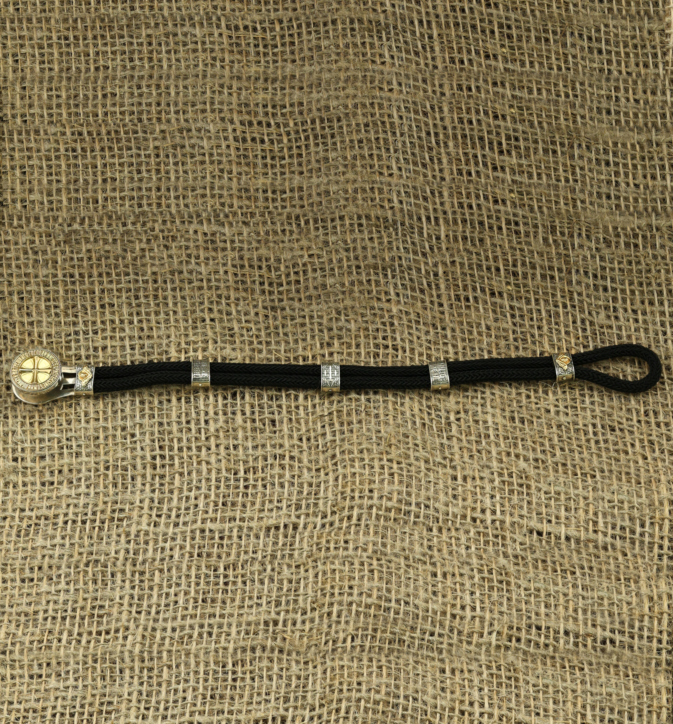 Браслет из серебра и золота c шёлковым шнурком