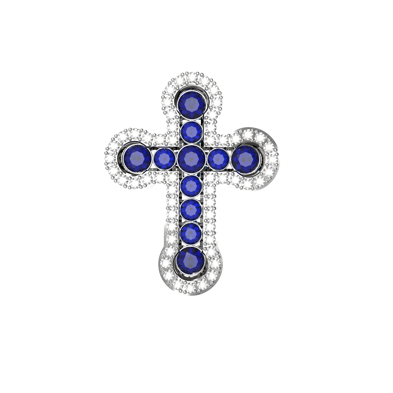 Крест из белого золота c бриллиантами и сапфиром