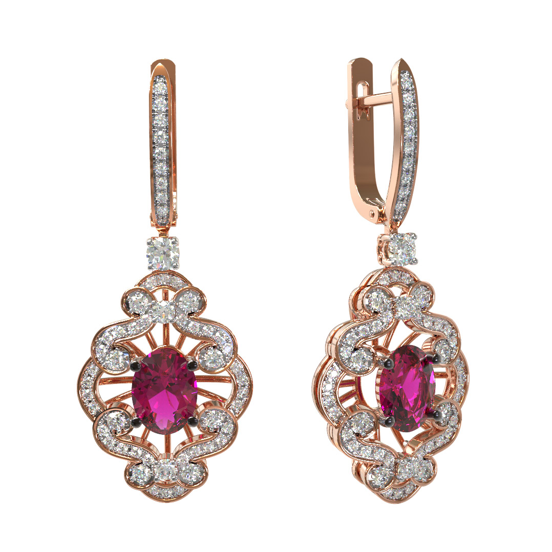 Серьги из золота c бриллиантами и рубином