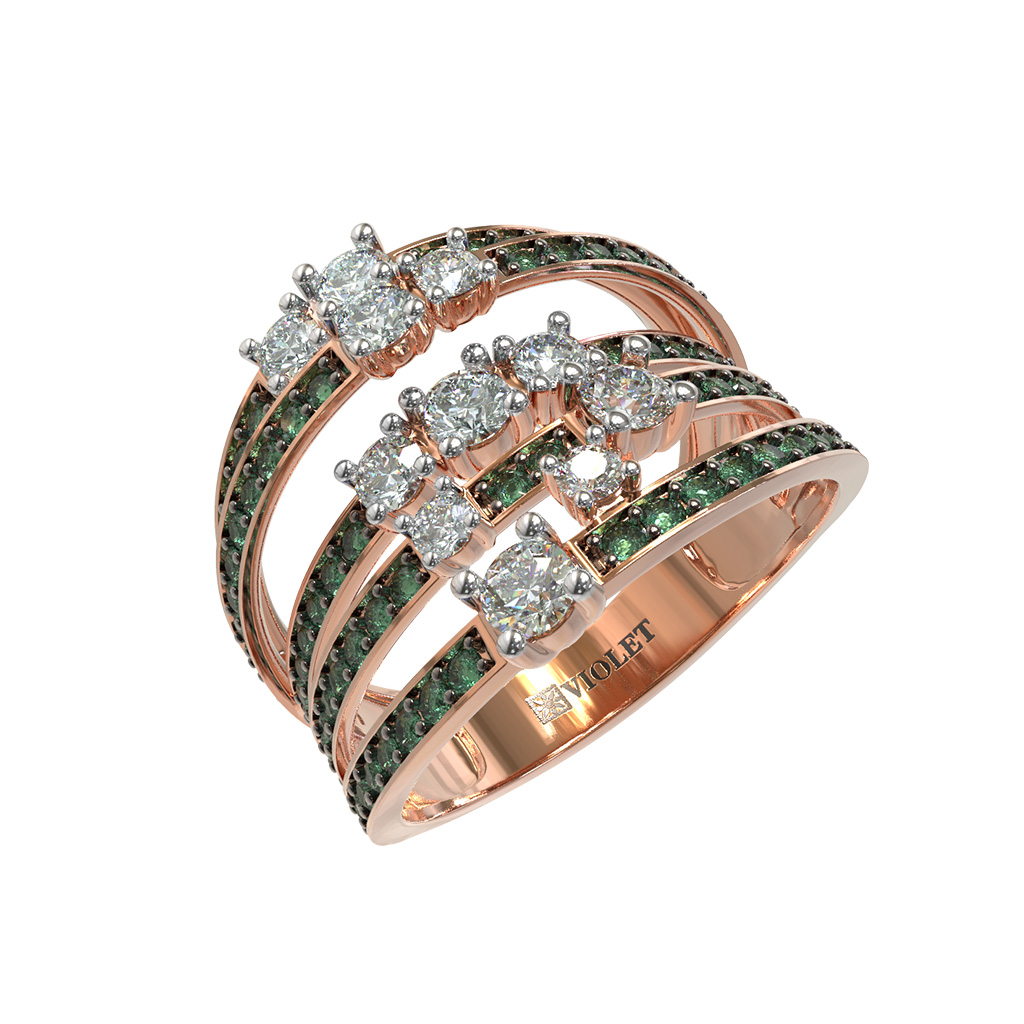 Кольцо из золота c бриллиантами и изумрудом