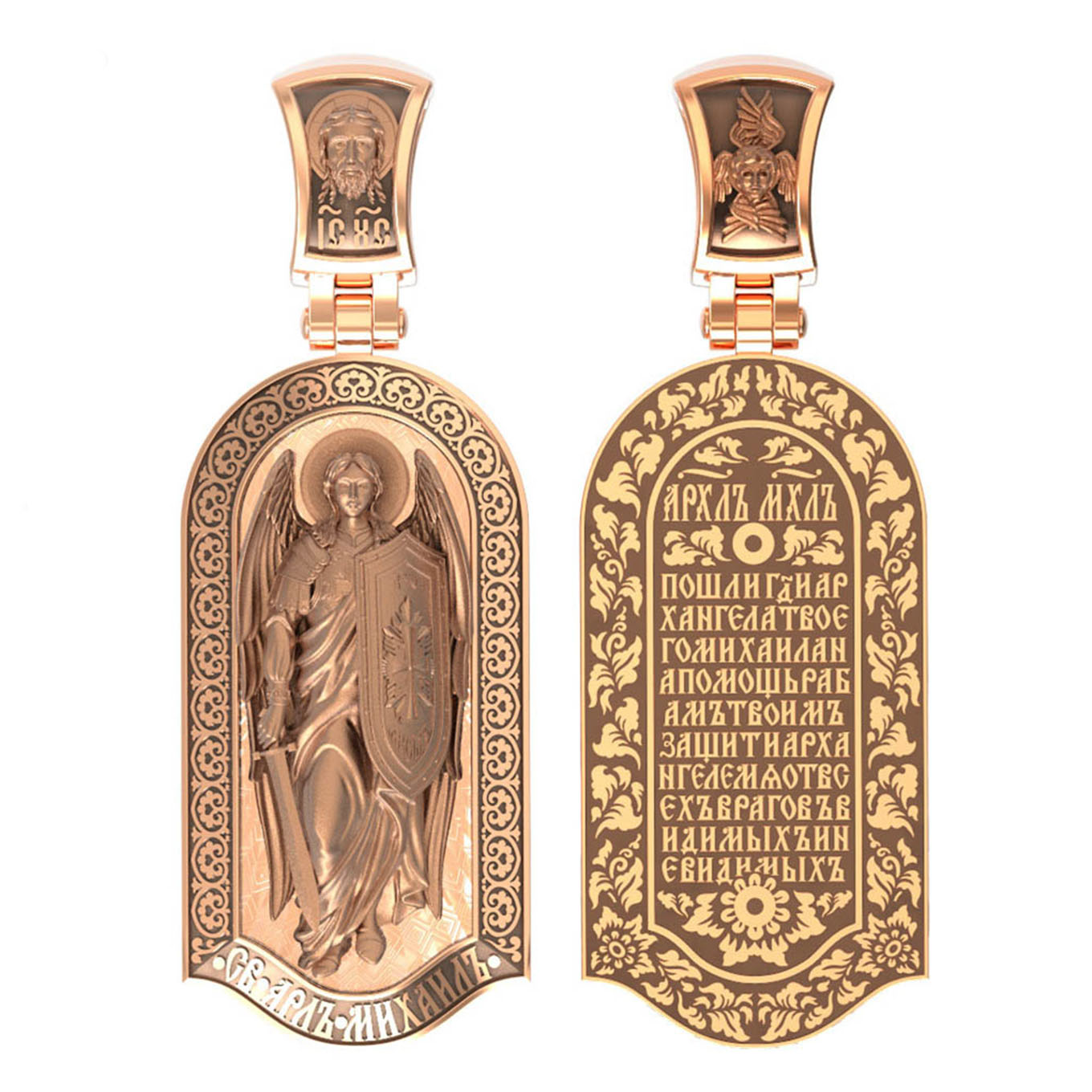 На обороте образка написана молитва Архистратигу Михаилу: «Посли, Господи, Архангела Твоего Михаила на помощь рабам Твоим. Защити, Архангеле, мя от всяких врагов, видимых и невидимых.»