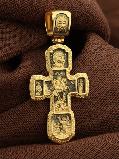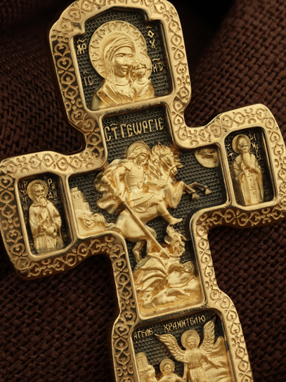 В центральной части оборота креста изображен Георгий Победоносец — покровителем и защитником воинов.
