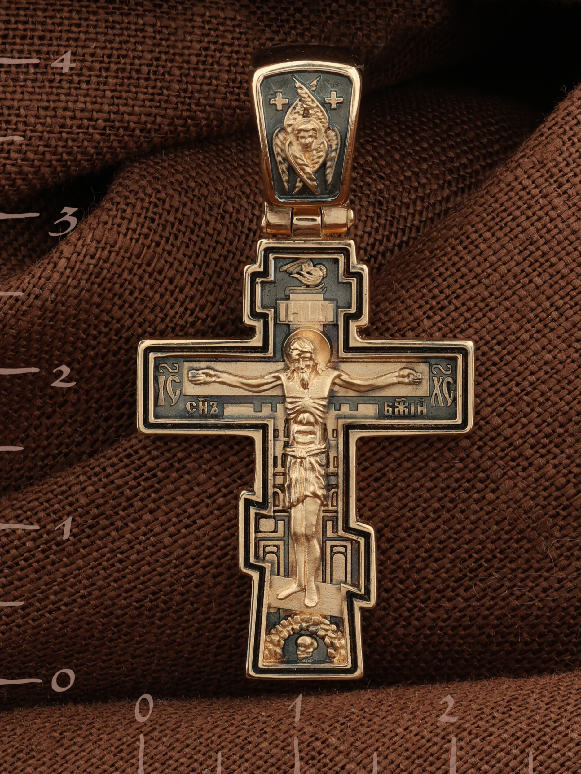 Восьмиконечный нательный крест с Распятием Иисуса Христа на горе Голгофе. Форма этого кресты является одной из самых распространенных на Руси и более всего соответствует тому Кресту, на котором был распят Христос.