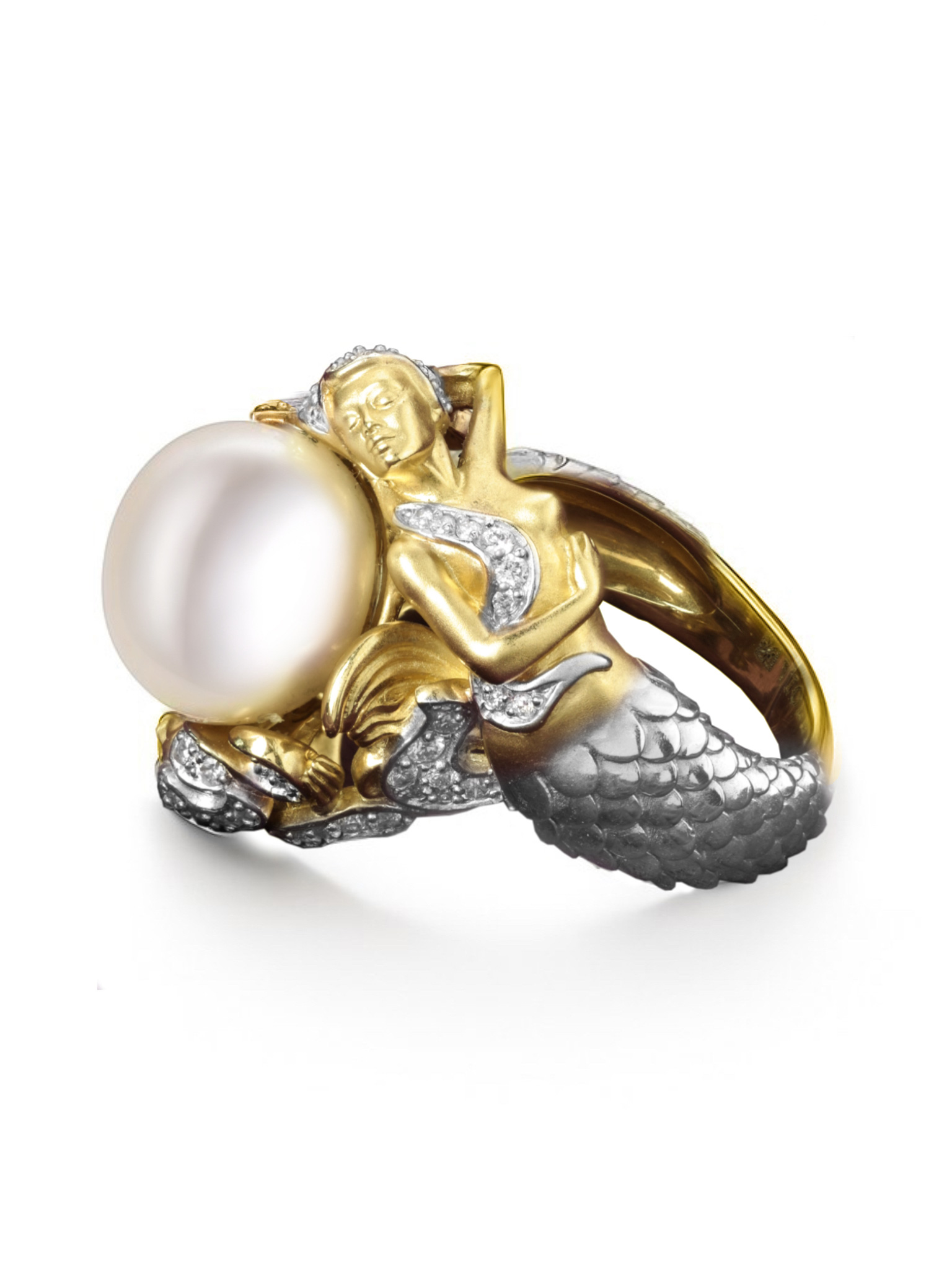 Кольцо из лимонного золота c бриллиантами и жемчугом