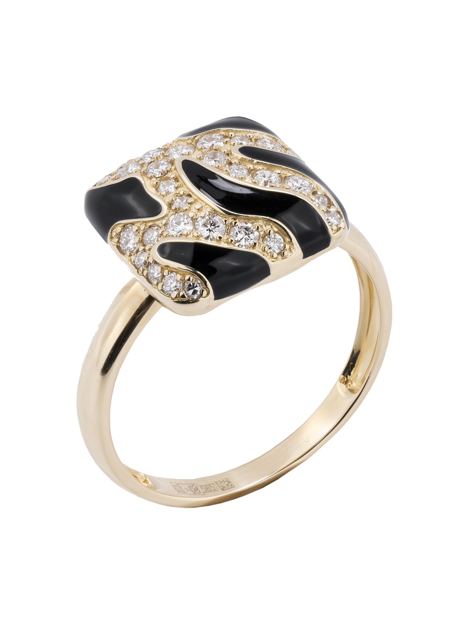 Кольцо из лимонного золота c эмалью и бриллиантами