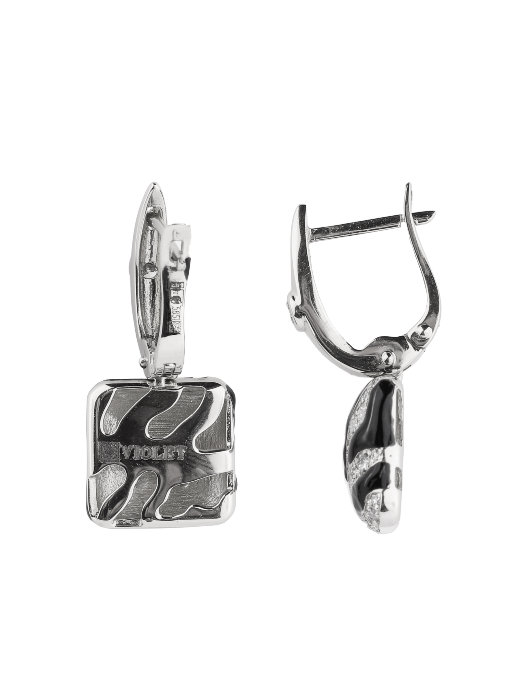 Серьги из белого золота c эмалью и бриллиантами