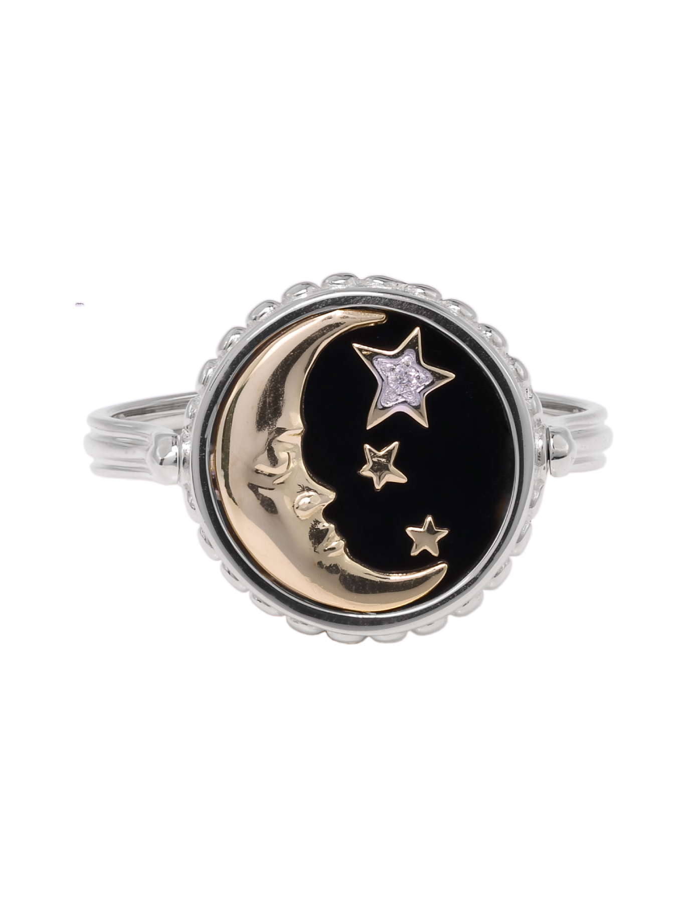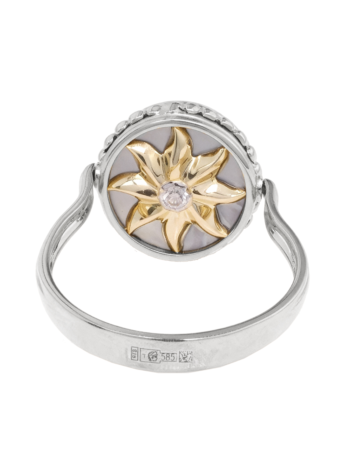 Кольцо из белого золота c бриллиантами, ониксом и перламутром