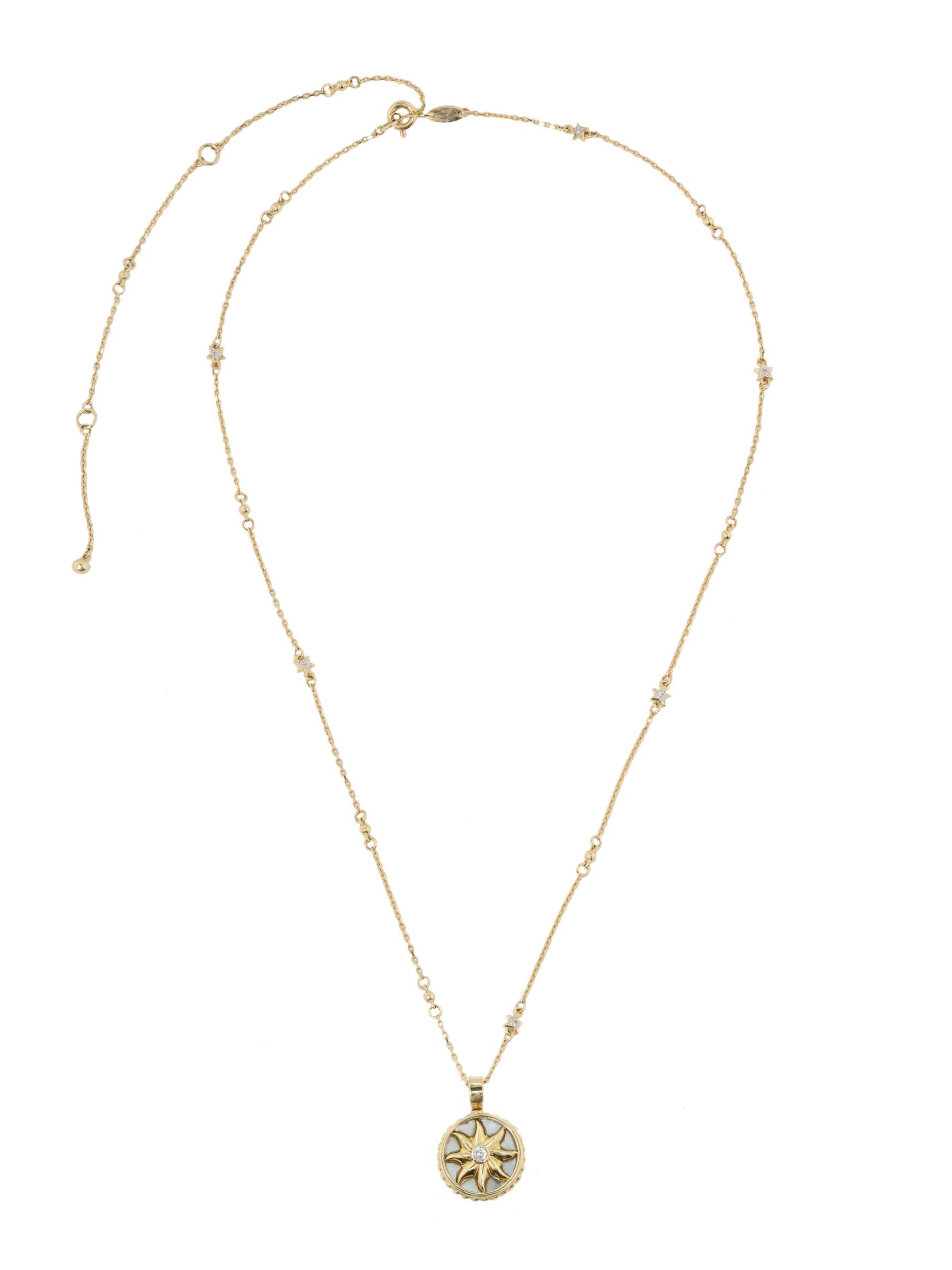 Колье из лимонного золота c бриллиантами, лазуритом и перламутром