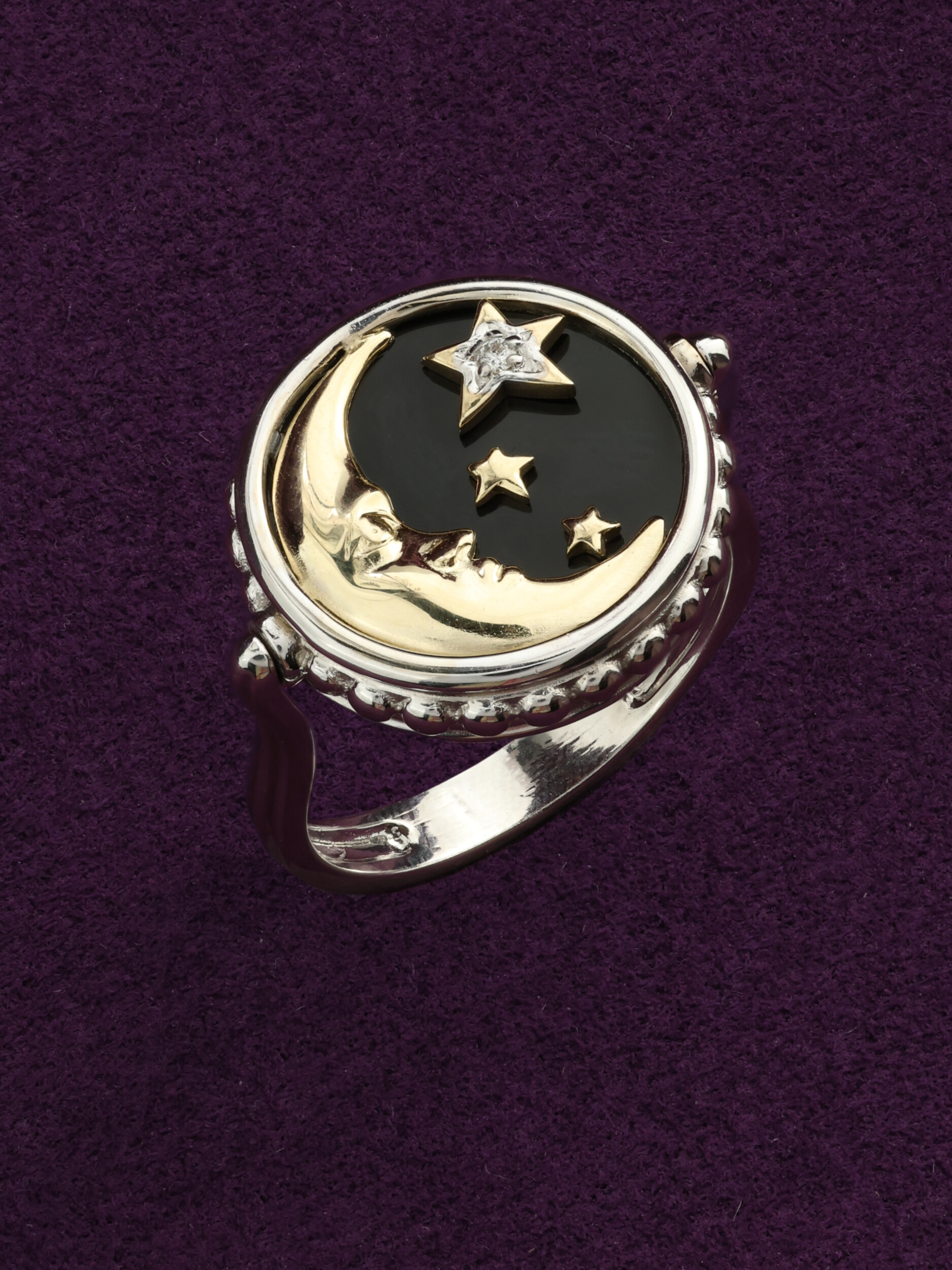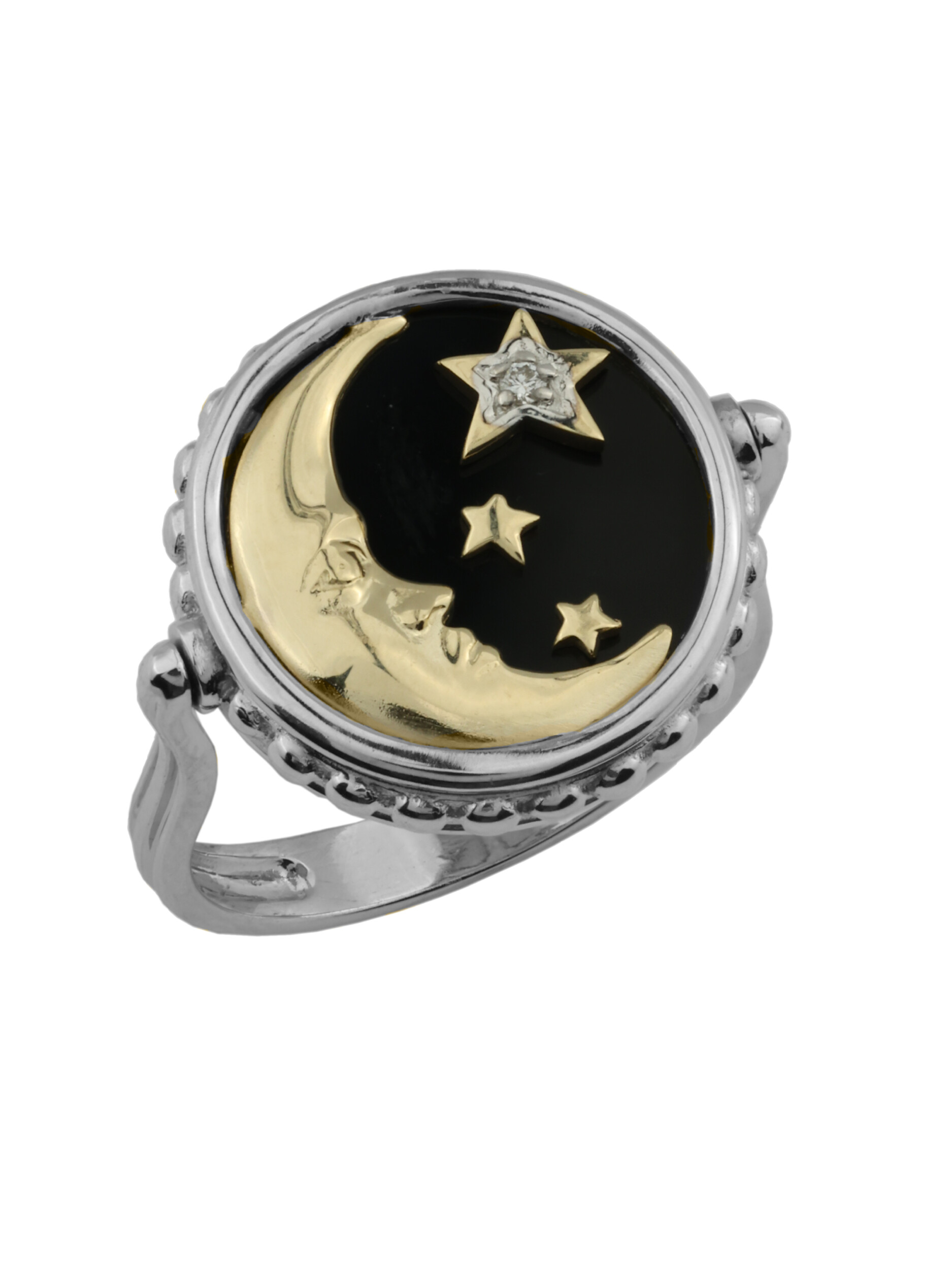 Кольцо из белого золота c бриллиантами, ониксом и перламутром