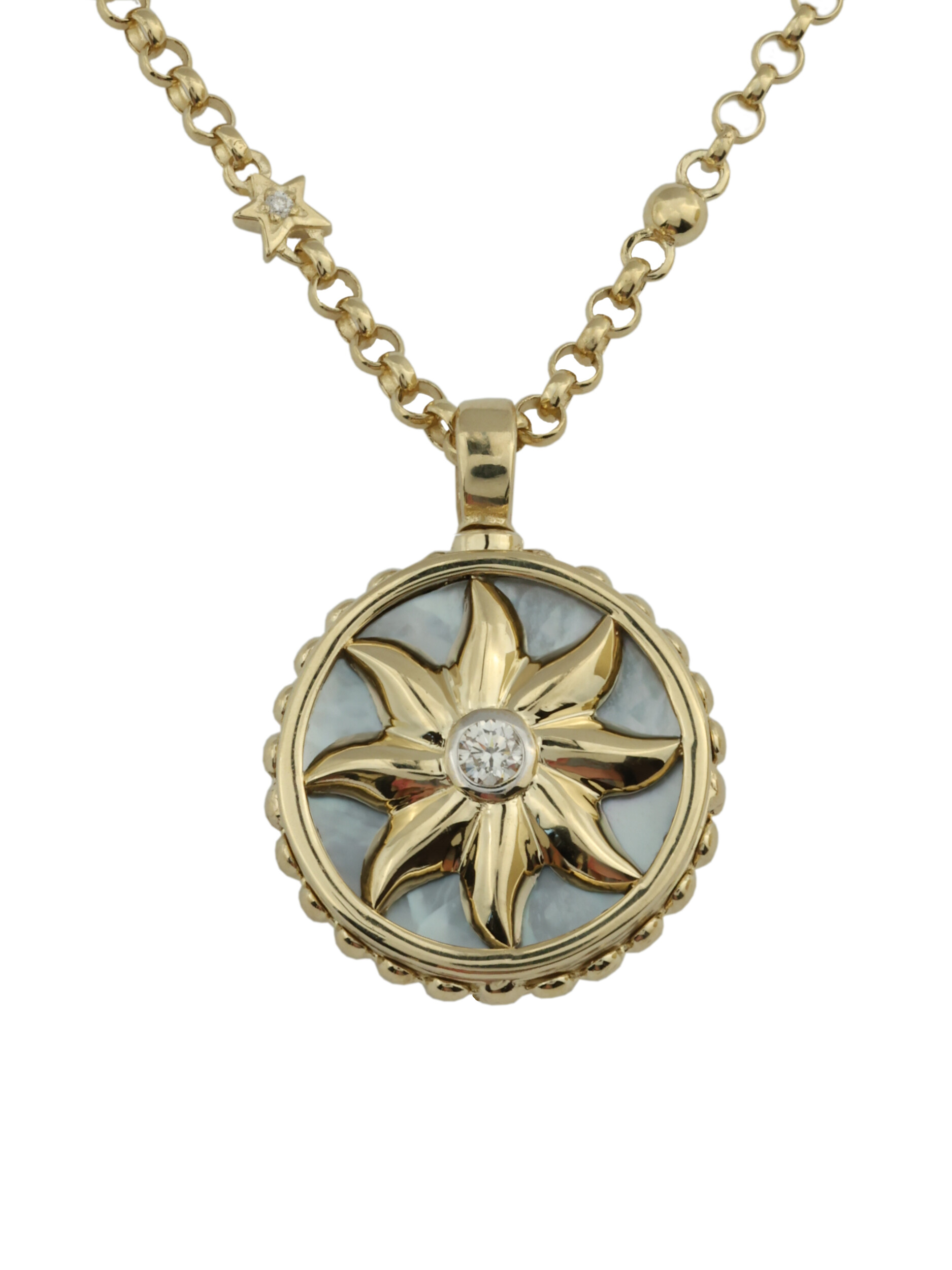Колье из лимонного золота c бриллиантами, лазуритом и перламутром