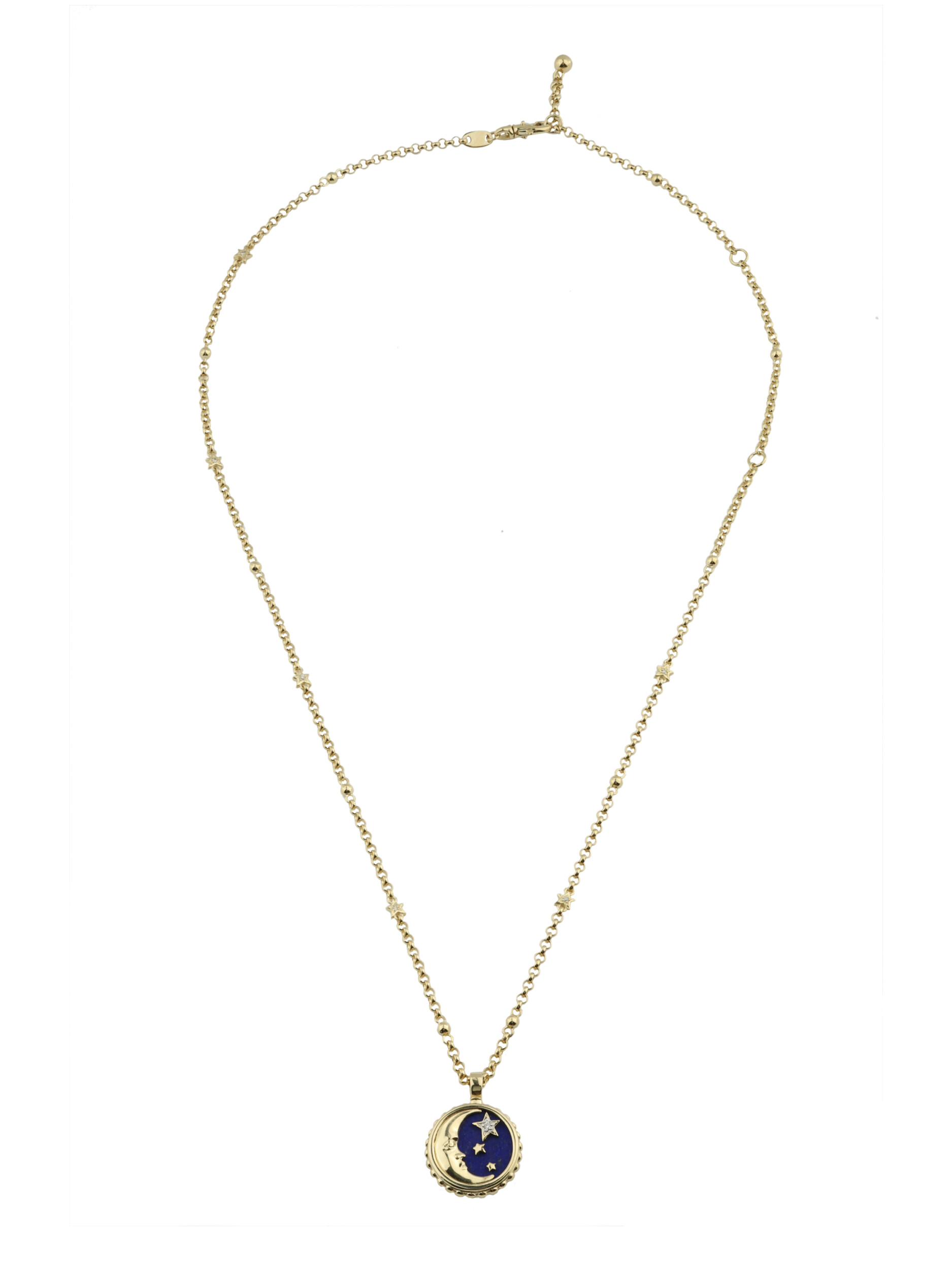 Колье из лимонного золота c бриллиантами, лазуритом и перламутром