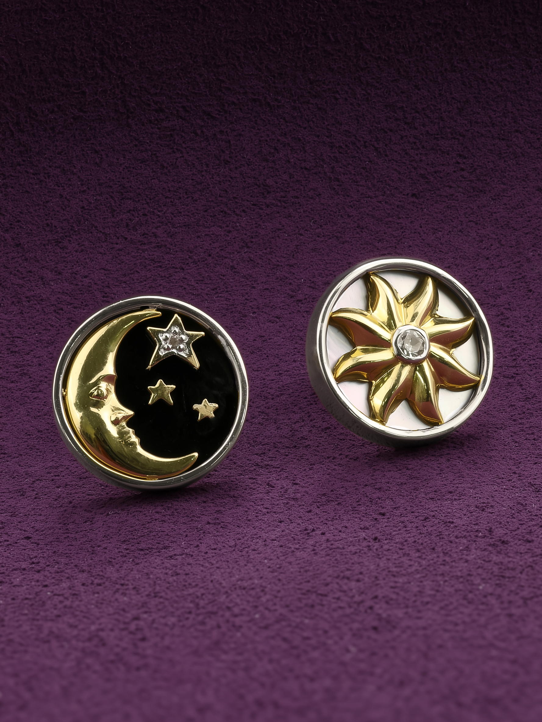 Серьги из белого золота c бриллиантами, ониксом и перламутром