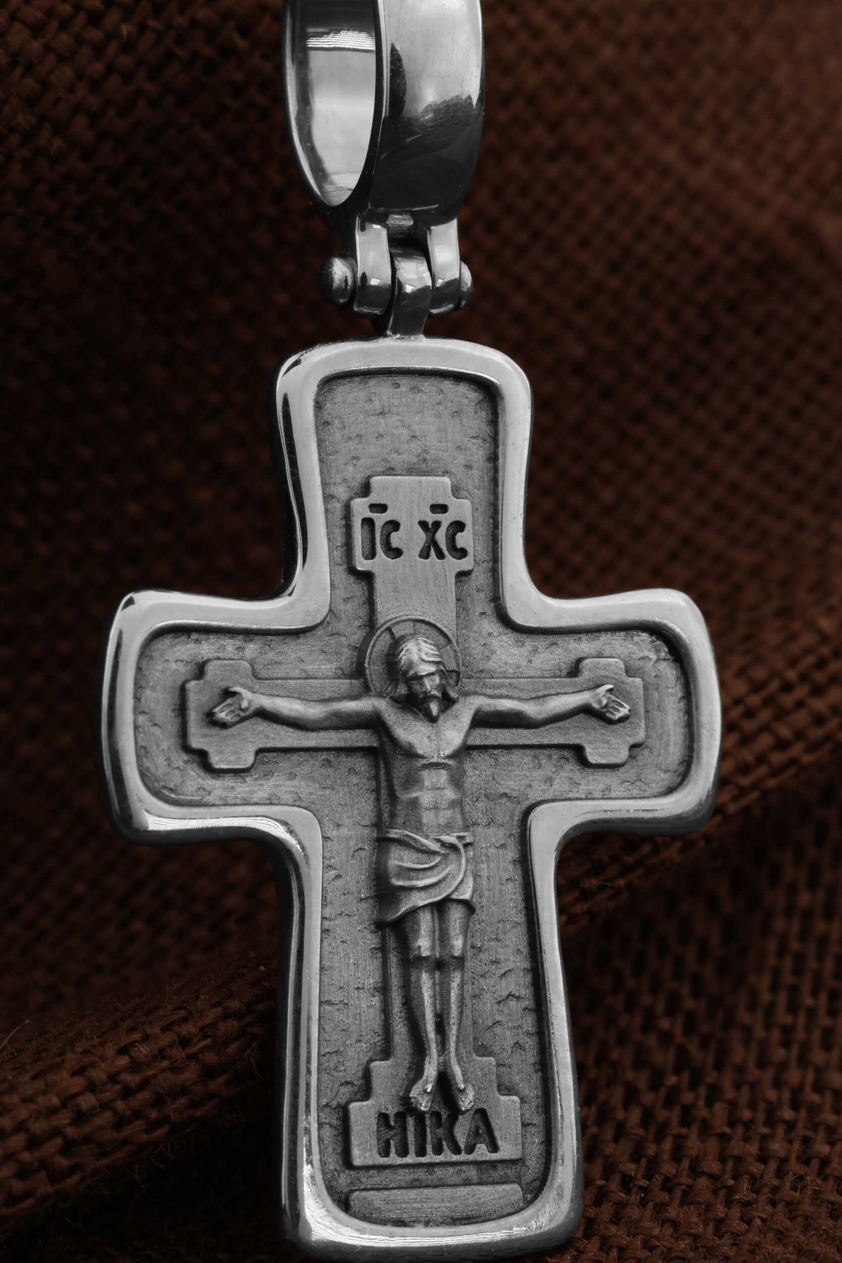 На лицевой стороне креста изображено Распятие Господа и Спасителя нашего Иисуса Христа, отдавшего Себя на смерть, для искупления грехов мира. Крест является символом жертвенной любви Всеблагого Бога к падшим людям, всепобеждающим духовным оружием христиан, основанием и средоточием церковной жизни. Господь сказал: кто хочет идти за Мною, отвергнись себя, и возьми крест свой, и следуй за Мною. (Мк. 8: 34). Надпись «IС ХС» означает Иисус Христос. Надпись –«НИКА» означает победитель.